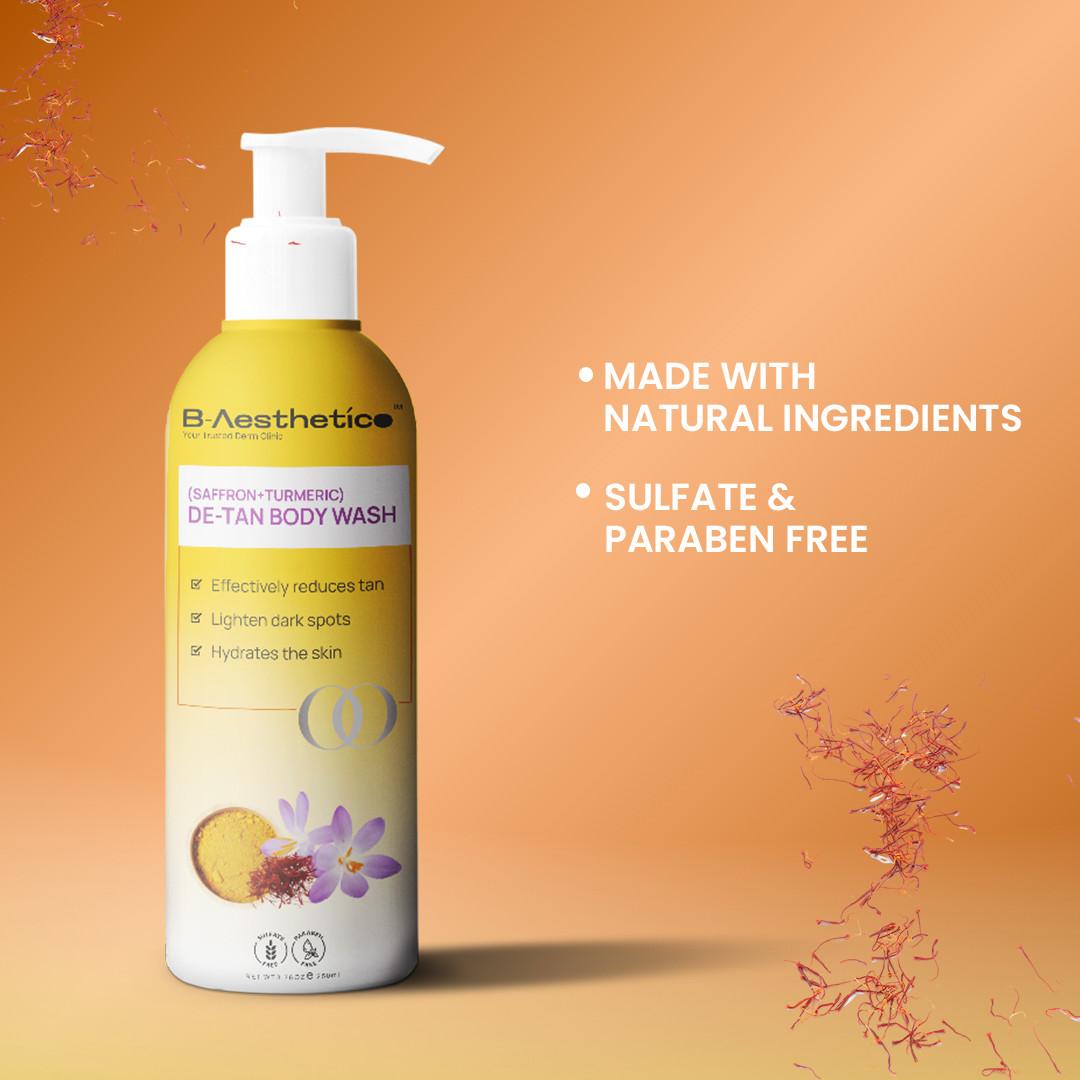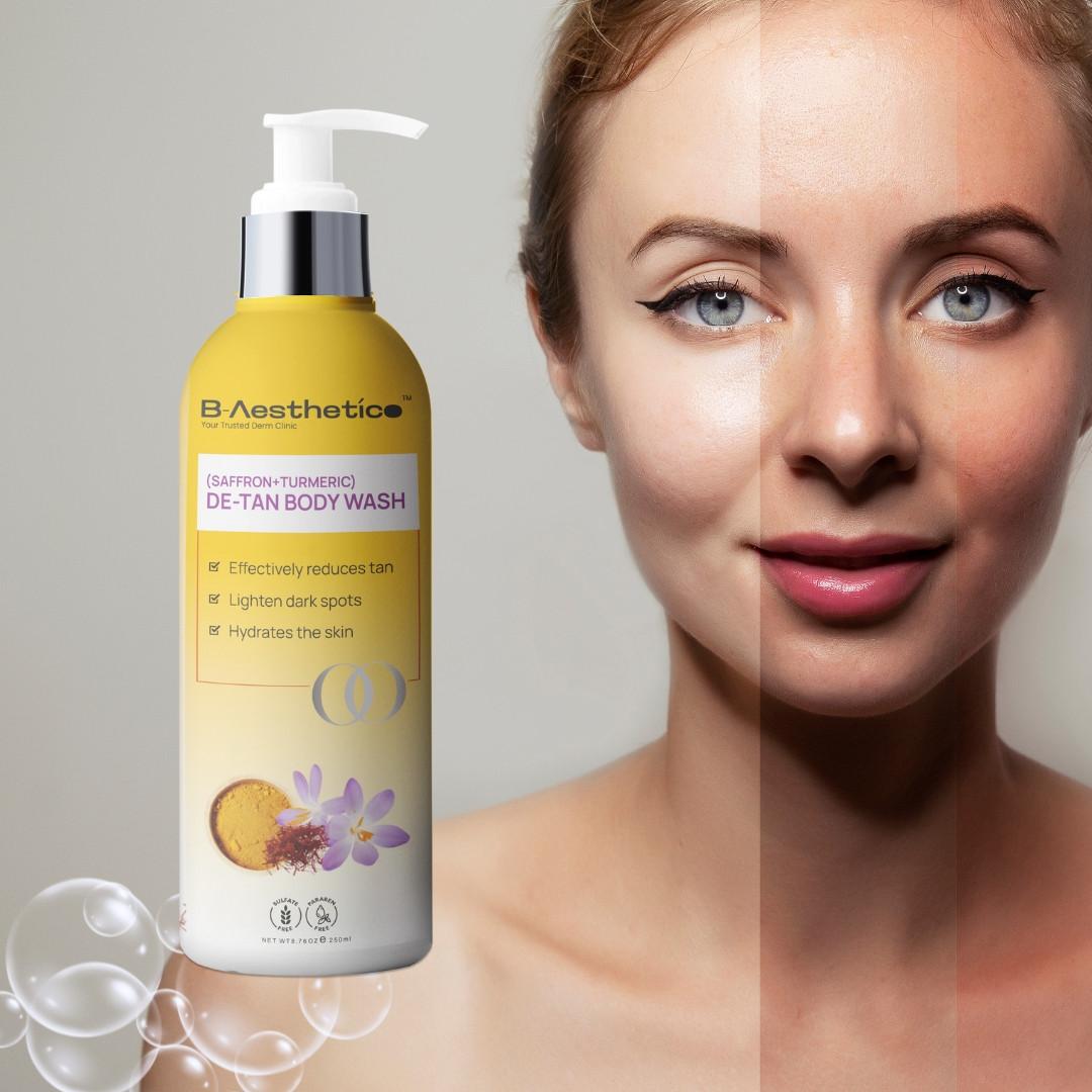 De-Tan Body Wash deeply cleanses and brightens your skin. It helps in removing tan, lightening dark spots, and uneven patches. It keeps your skin hydrated and soothes sun-exposed skin. It restores the natural radiance of your skin, providing substantial moisture and vital nutrients to dry and dull areas.